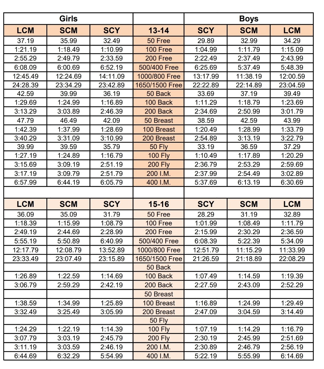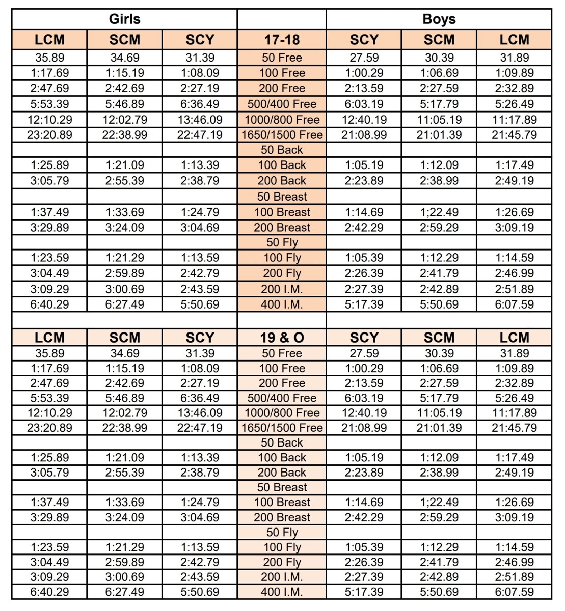 -Example: If your swimmer turns 11 on January 9th, 2026...they would need to meet the 11/12 year old qualifying time standard for Championships. Even if they achieve a qualifying time in the 9/10 age group...it wouldn't count for Championships. They would have to swim a time listed in the 11/12 age group.