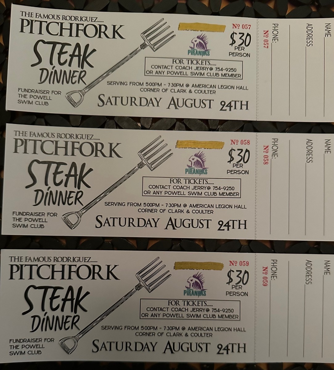 Our other event, the Pitchfork Steak Fry Dinner, will be Saturday evening. We will need lots of help with that, also.
