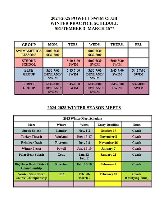 2025 Winter Season starts on Tuesday! Check out the new practice schedule and the winter meet schedule as of now. There will be updates to the meet schedule. As they become available the schedule will be updated.