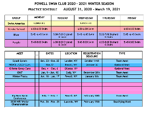 Hey Team, It is finally time to start the 2021 winter season! First practice, for returning athletes, with the winter schedule is Monday, August 31. New practice schedule and tentative meet schedule is attached. Remember to re-register all athletes for the 2020-2021 as soon as possible. Open House at the PAC and registration for new swimmers is Tuesday September 8, 5-7 pm. Invite your friends to come join the team or at least check things out. Any parents who wish to help answer questions are welcome to attend also. The...