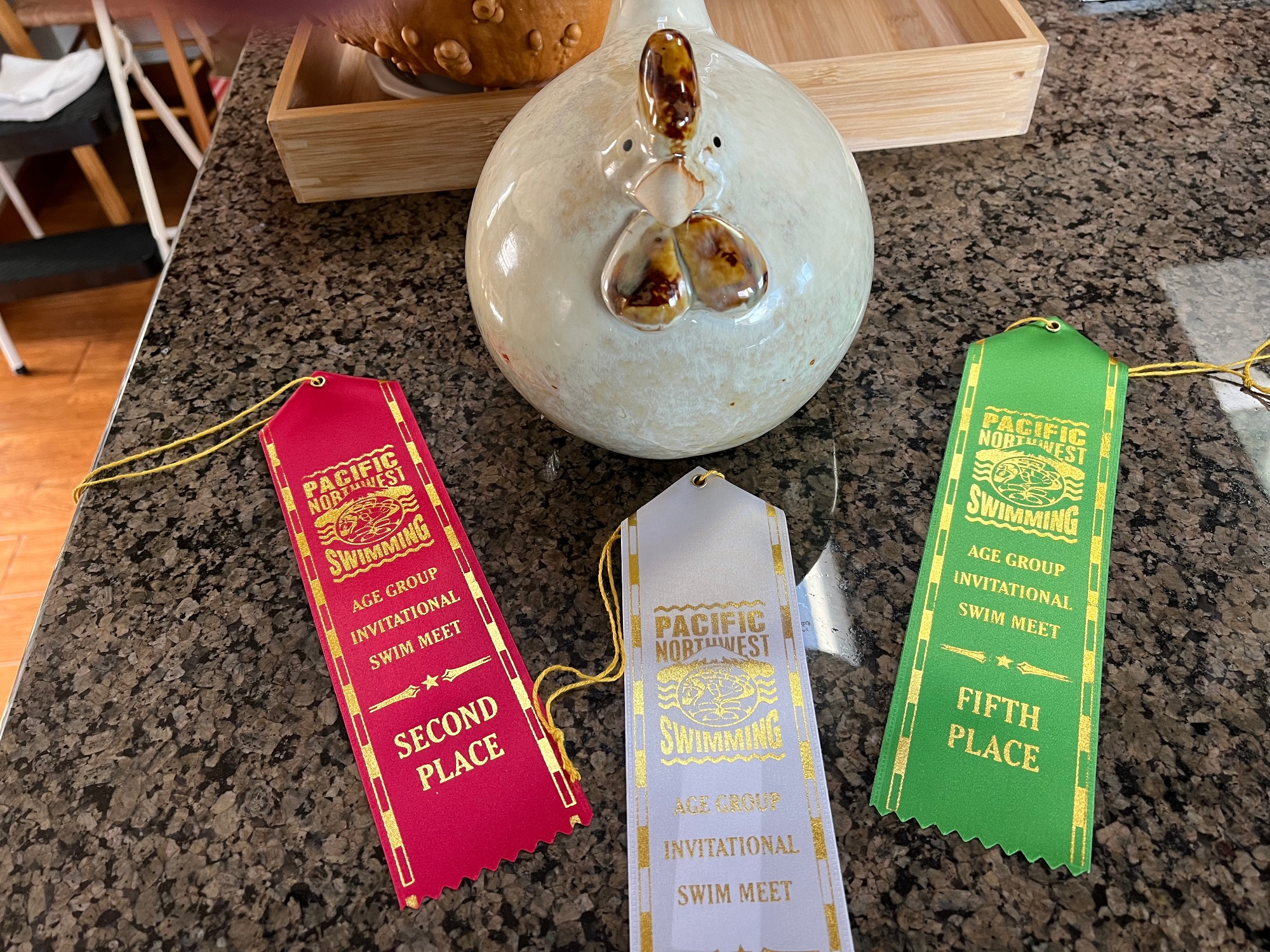 Every Mighty Marlin swimmer scored one or more ribbons, for a top 8 finish, at the Age Group Invite at Kamiak High School! Alora...