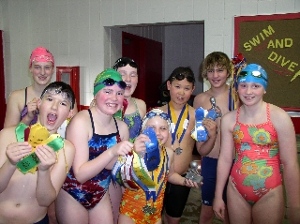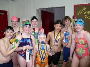Maggie Delaney, Bindi Pedersen, and Sarp Orgul earned bobbleheads for winning the overall title in the Triple Pentathlon at Oak Harbor. Maggie and Bindi had the best overall time for 10 events, and Sarp had to endure 15 events including the 200 of each stroke and the 400 IM for his victory.