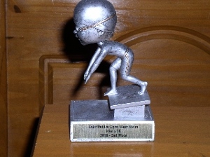 Coach Kirby covered the 5 Kilometer course in a little over an hour and 17 minutes taking 2nd at the Lake Padden Open Water Swim. For his efforts he earned a Bobble Head in his own likeness!!