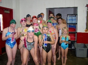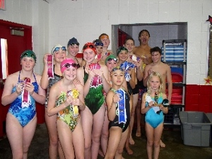 The highlights of the meet included Rebekah just missing a PNS Champs time in the 50 and 100 breaststroke, Kyle and Klayton just missing the team record in the 25 free, and Micki McDonough receiving a beautiful bouquet of flowers!