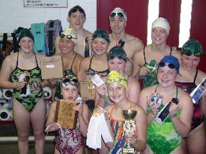 Every Mighty Marlin that swam contributed to the Mighty Marlins impressive 7th place finish at PNS Champs. Bindi Pedersen bettered 5 PNS records during the meet and Christina and Jennifer Domanowski each won the high point award for their age group to lead the way. The key to the Marlins success was their performance in relays. Trailing NWAC by 34 points with 2 relays to go the 15 & over girls and boys relays swam remarkable times to place 5th and 8th respectively, make up the deficit, and earn the Marlins 7th in the meet. Throughout the meet the 10 & under, 11-12, and 13 & 14 relays also performed extremely well to secure the Marlins impressive finish!