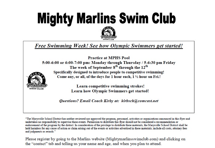 Free week of swimming for new, interested swimmers! Tell your friends!