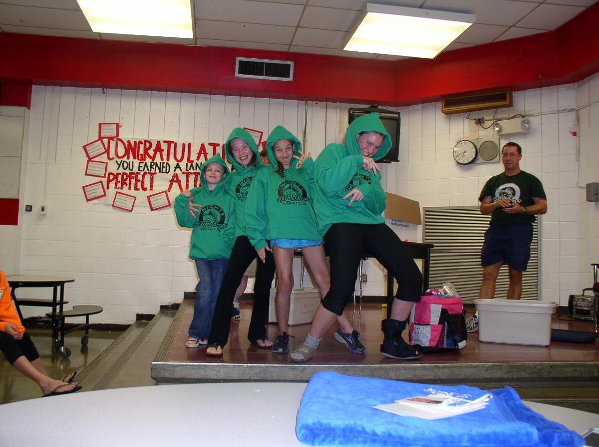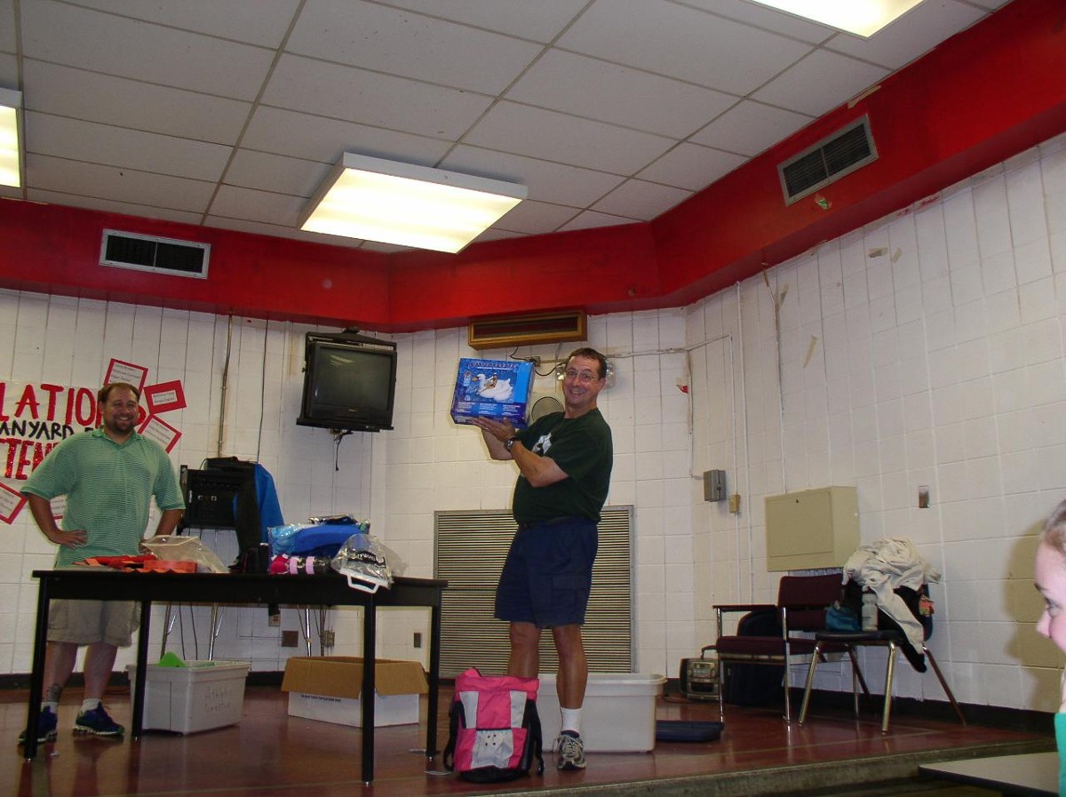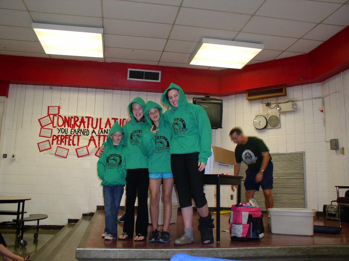 Lawren Rainey won the huge inflatable goose, and other prizes, in the "Big Bag O Stuff" awarded as the grand prize at the Swim-A-Thon Raffle! Fun was had by all!