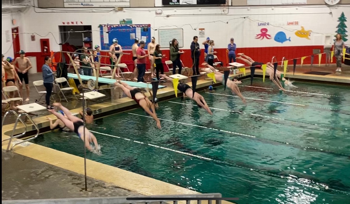 Alumni Meet is a rollicking Success. Parents, Swimmers, Alumni, and a guest appearance from WEST Swim Team, headed by Andrew Winquist, made the Alumni Swim Meet a huge success. A great part of the meet was the participation, and enthusiasm, by all the people who volunteered to help, on the spur of the moment. The competition was highlighted by dominant performances in the relays by the eight Mighty Alums, who appeared to have not lost a step, as they took off flying, and never looked back. The Marlin Team, with their great depth, won the meet scoring 704 points, while the Alums scored 402 and WEST scored 379.