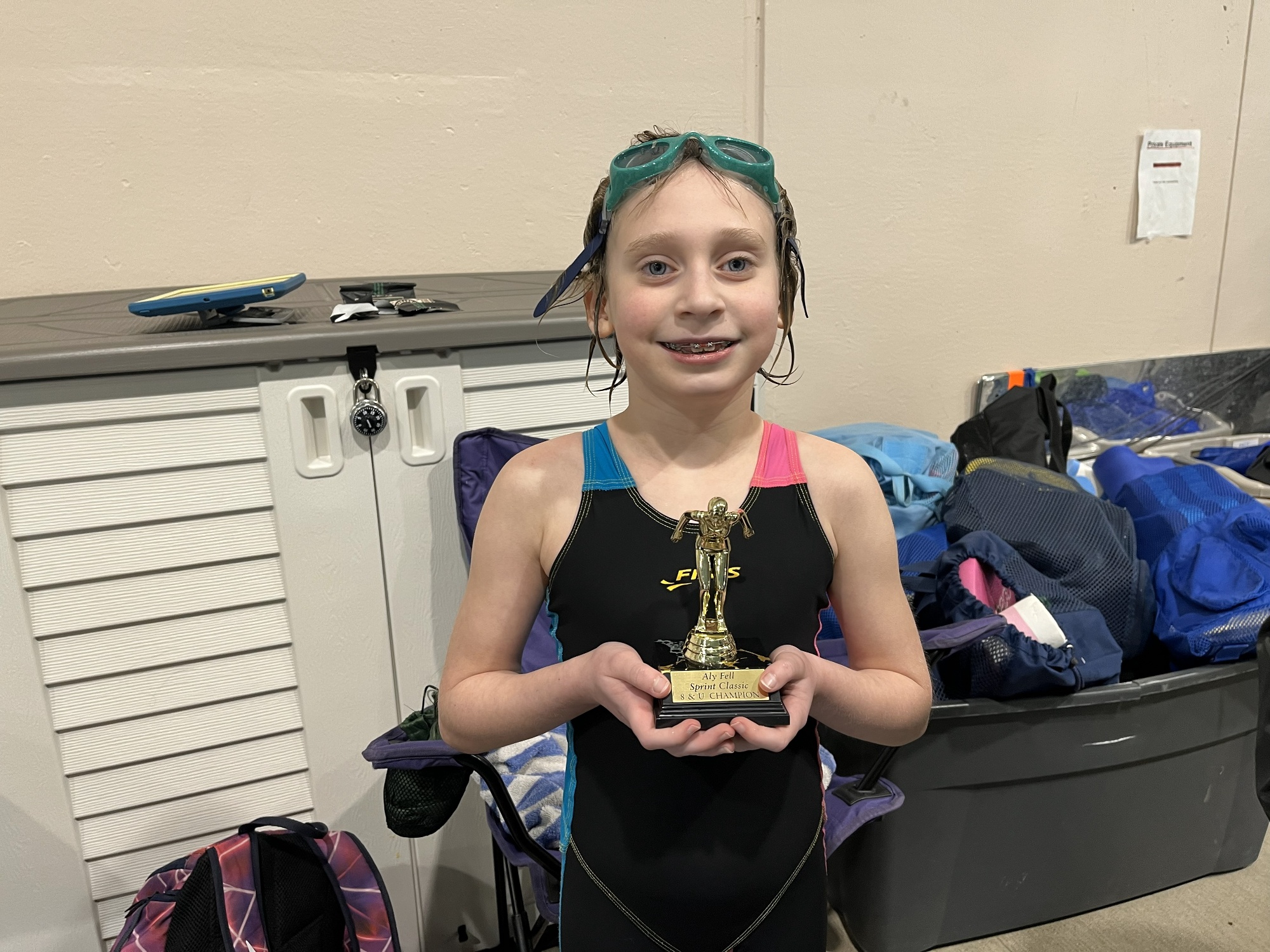 Rylee Whall Wins it all!! Rylee Whall took home the 8 & under top female swimmer trophy, for best overall time for 4 events. On the road to the award, she won the 25 and 50 breast, 25 back and 25 free, and was 2nd in the 25 fly and 50 free. Other Marlins with victories in individual events included: Clara Davidson winning the 100 back, her mom Trish winning 4 events in the 19 & barely over, age group, Ava Thompson with a victory in the 100 back, Owen Thompson in the 50 breast, and Sophia Whall in the 100-fly. Marlins with other top 8 finishes included: Seth Davidson with 4, Katherine Carlson, Zach Mullen and Kadie Whall 2 each, and Cali Gallagher, Layne Kopischka, Luke Mullen, Skye Swanson, Elijah Vaca, and Brynn Weber 1 each. CJ Grant, Aaron, and Alyvia Ybarra also swam well notching best times.