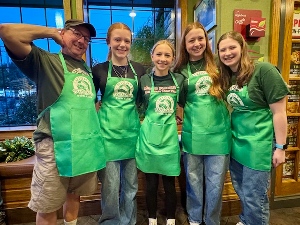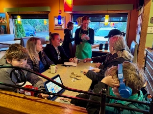 Marlins enjoy Flapjack Fundraiser breakfast at Applebee’s. It was great to see so many Marlins, happily helping-out, by serving breakfast at the Applebee’s in Marysville. It was also great to see lots of family member we rarely get to see. Food, and fun, was had by all. Rumor has it that Asher and Aaron enjoyed their job as busboys so much, that they stopped at 3 restaurants on the way home and applied for a job!