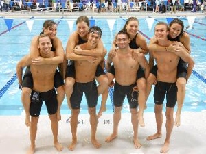Karoline Schaufler, Representing SOKA University, took top 16 honors at NAIA Nationals in Oklahoma City. Karoline broke 3 Soka University records in the process taking 10th in the 200 butterfly, and 16th in the 100 butterfly and 400 IM. Pictured you see members of the SOKA University team! Karoline also swam in 5 scoring relays pacing SOKA to a 15th place finish at NAIA Nationals!