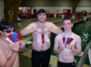 The event of the meet was definately the 400 meter freestyle as Christina Domanowski took 2nd and Jennifer took first! Jennifer also managed a second place finish in the 200 IM. Other Marlins turning in inspiring swims in the cold and rain included: Melody Coleman, Jewel LeValley, Justin Murrell, Bindi Pedersen, and Karoline Schaufler!