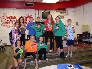 Lawren Rainey won the huge inflatable goose, and other prizes, in the "Big Bag O Stuff" awarded as the grand prize at the Swim-A-Thon Raffle! Fun was had by all!