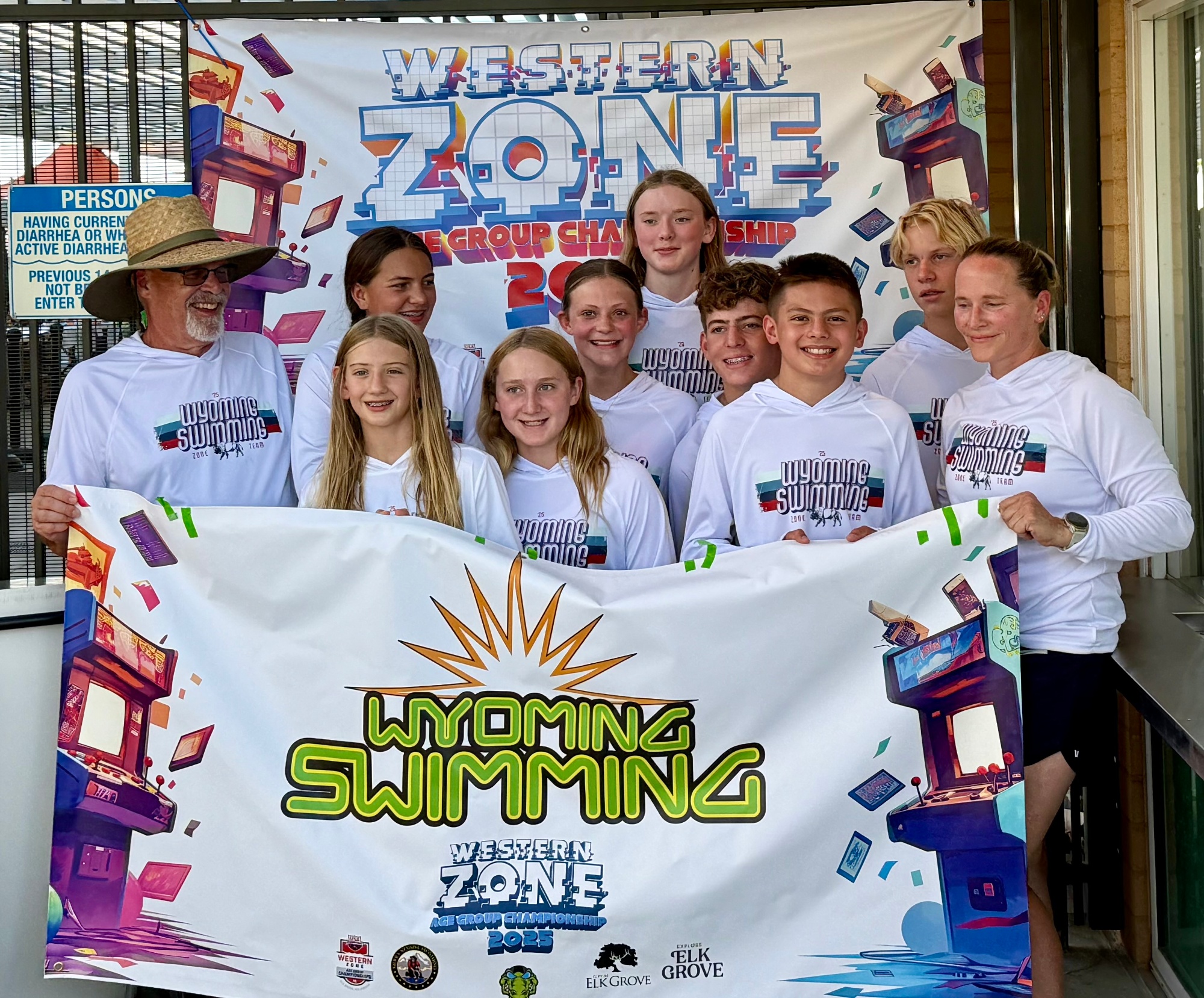 For the first time in several years, Wyoming Swimming sent eight (8) athletes to Elk Grove to compete in the Western Zone Age Group Championships. The team was led by Head Coach Dave Hoch with assistance from coach/chaperone Sarah DeLay.