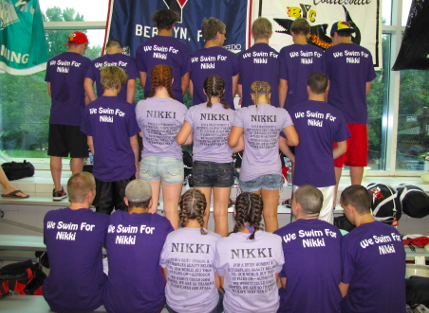 Above the 2008 LEHY Long Course National Team remembers and honors Nikki by wearing swim caps with NIKKI printed on them. The caps have become a tradition since 2008. Below the 2010 LEHY National Team made shirts in Nikki’s memory and wore them for opening cer