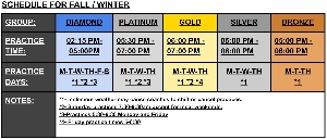 PRACTICE SCHEDULE (as of August 11, 2025)