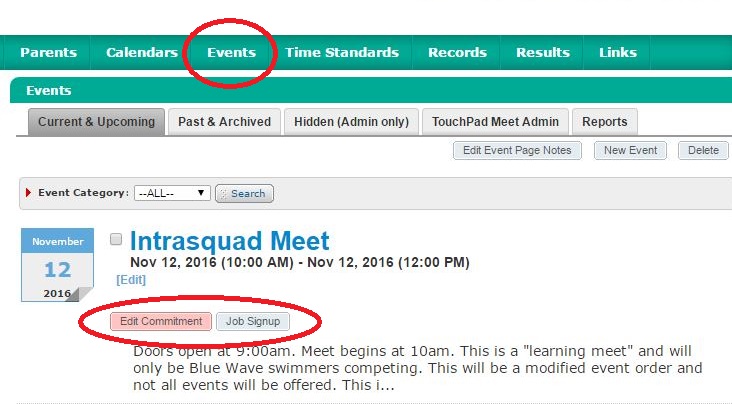 It is expected all parents/swimmers will regularly check the Meets/Events tab for information on upcoming meets.
