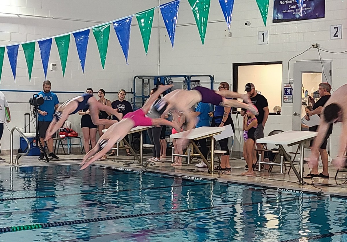 While the team competes together at swim meets, Delta and Dickinson Program Center run their own practice schedules.