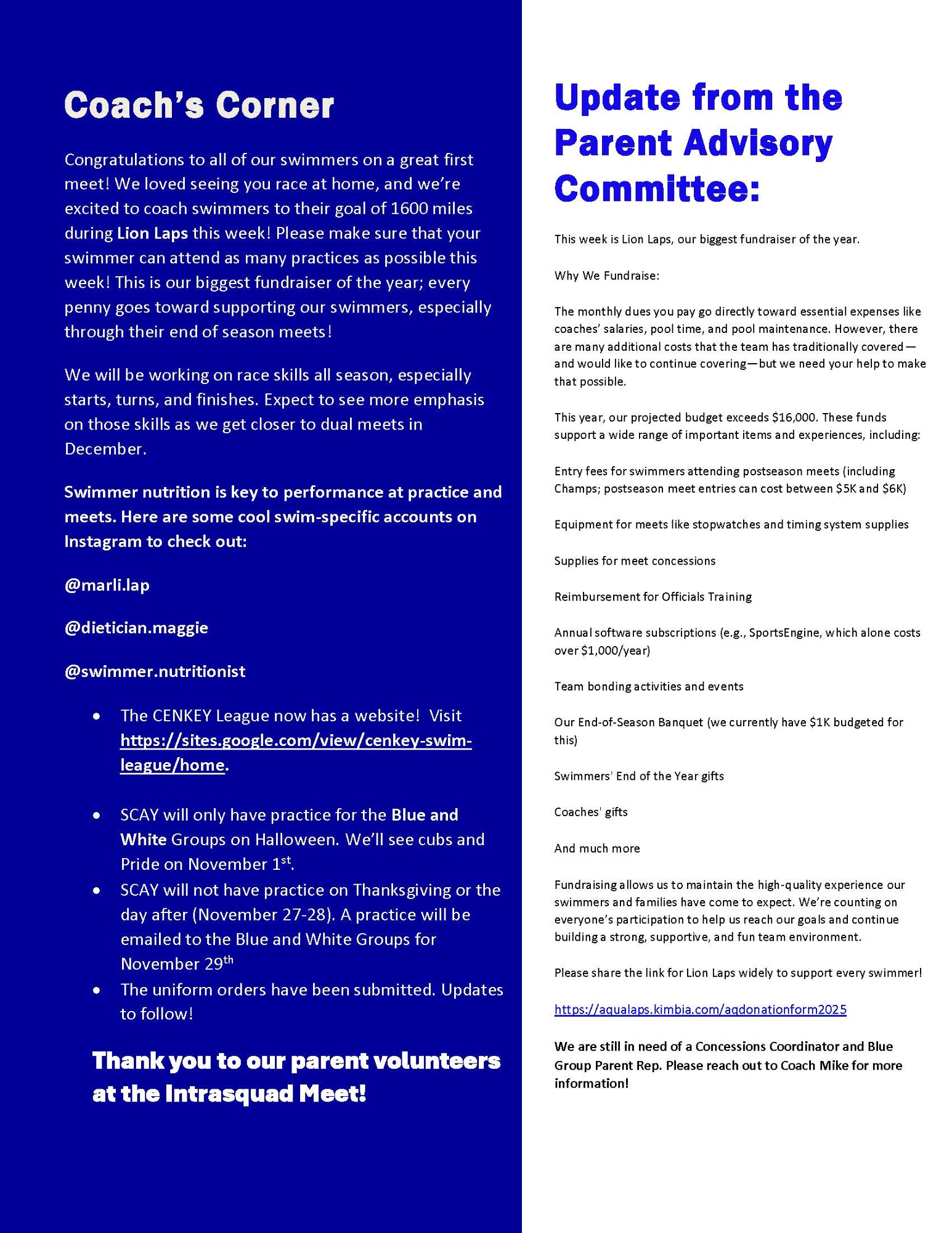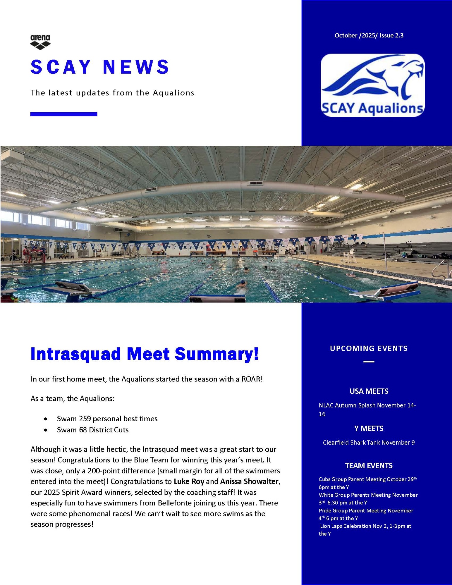 SCAY News Issue 2.3: Intrasquad Meet Results!